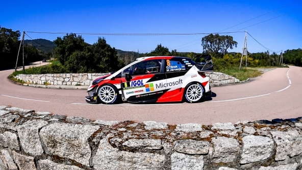 La pareja luchó con uñas y dientes todo el día sobre asfalto retorcido en las montañas del sur de la isla. Evans lideró inicialmente antes de que Tänak se adelantara después del bucle de la mañana, sólo para que el galés recuperara su ventaja esta tarde, ya que Tänak sufrió un problema más grave.