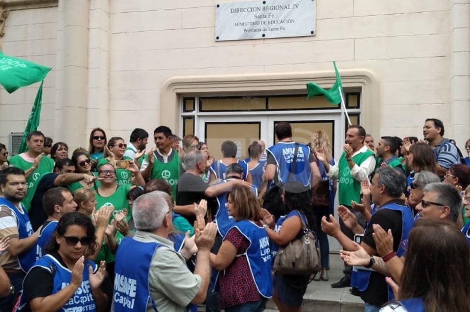 Esta mañana se realizó una movilización de docentes públicos y privados hacia la Regional IV de Educación, en calle Avellaneda al 3.300.