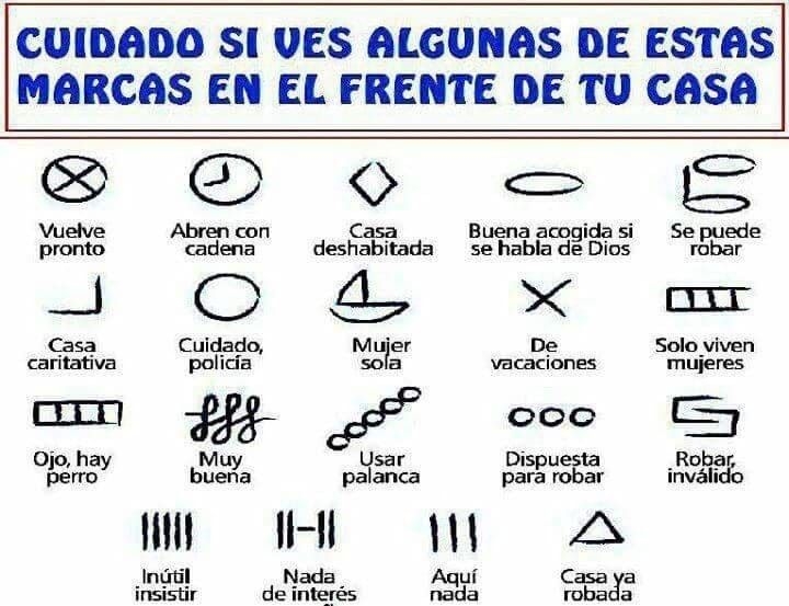 Existen marcas “tradicionales” que pueden aparecer en los frentes de los domicilios según las características de los mismos. Casas con mujeres solas, viviendas donde sus dueños se encuentran de vacaciones, son algunas de las señales que dan los delincuentes a sus cómplices para concretar los robos con mayor efectividad.