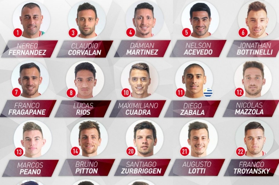 En resumen, los 11 que tiene más chances de jugar ante el Pincha, son los siguientes: Nereo Fernández; Damián Martínez, Yeimar Gómez Andrade, Jonathan Bottinelli y Bruno Pittón; Diego Zabala, Nelson Acevedo, Mauro Pittón y Franco Fragapane; Franco Troyansky y Lotti o Cuadra.