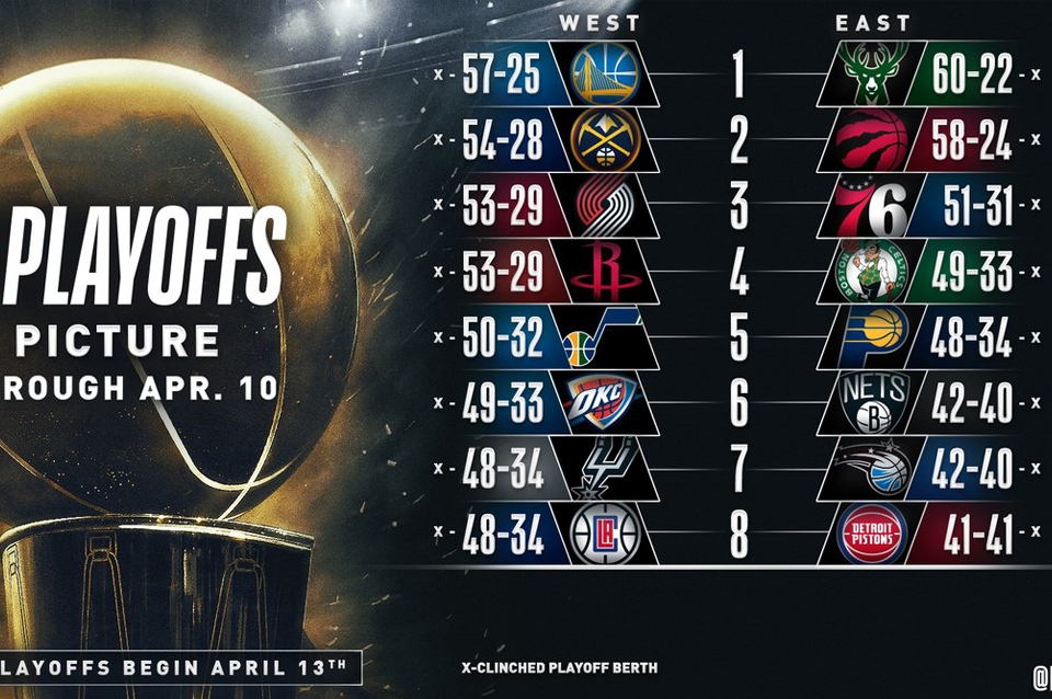 Las series que comenzarán a jugarse el sábado, son: Toronto Raptors (2) – Orlando Magic (7), y Philadelphia 76er. (3) – Brooklyn Nets (6), por la Conferencia del Este; y Golden State Warriors (1) – LA Clippers (8), y Denver Nuggets (2) – San Antonio Spurs (7), por la Conferencia del Oeste.