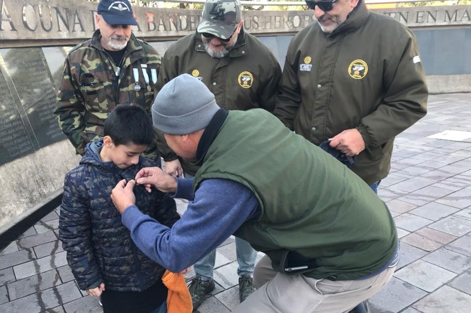 Chamorro le expresó a Ignacio durante el breve acto que "Malvinas es algo que no se tiene que olvidar nunca y vos, con lo que estás haciendo, estás compartiendo los mismos valores por los que nosotros luchamos en Malvinas. Por eso sos un orgullo, por tu compromiso, y sos una personita que lleva adelante la Causa Malvinas para el futuro".