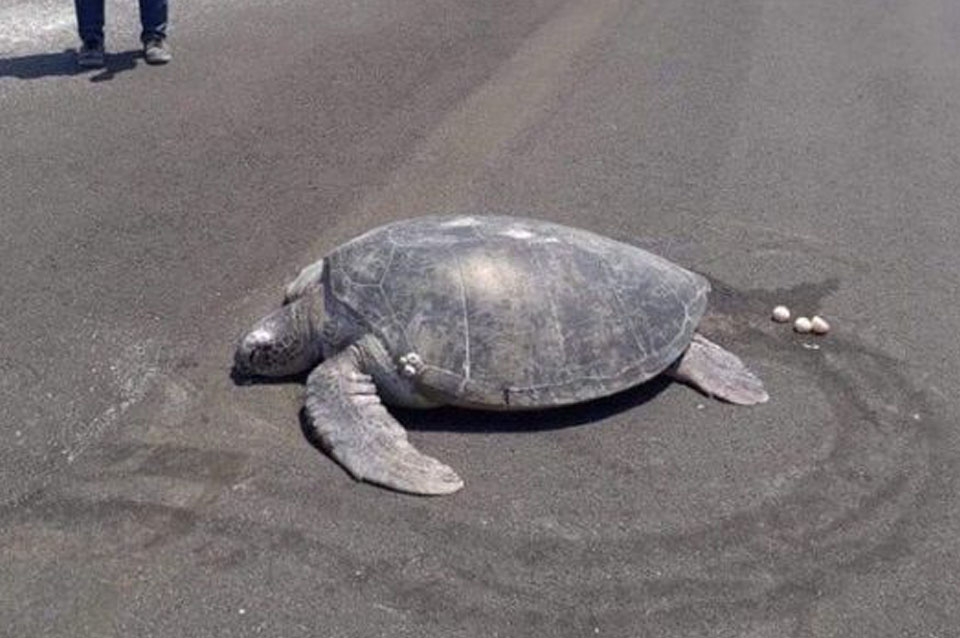 La imagen desconcertó a miles de habitantes de Mandhoo, una de las islas, después de que la tortuga verde tuvo que colocar sus huevos sobre el asfalto, correspondiente al aeropuerto Maafaru, según informó el periódico local The Edition.