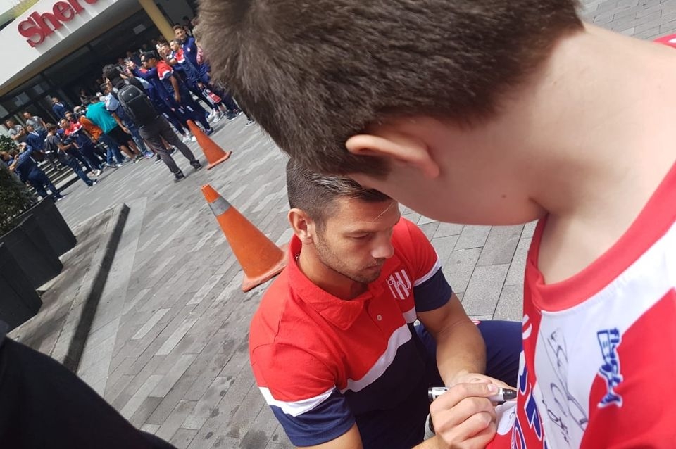 Con los atuendos tradicionales rojo y blanco y banderas se movieron cantando para sacudir la tranquilidad de un lugar nuevo. Más que nada, por ser su debut en un torneo internacional y por eso se vive con tanto entusiasmo y fervor. No es una casualidad, porque vuelve a ser una muestra del amor incondicional de la gente sobre un grupo que armó Leonardo Madelón que entró en la historia grande del club.