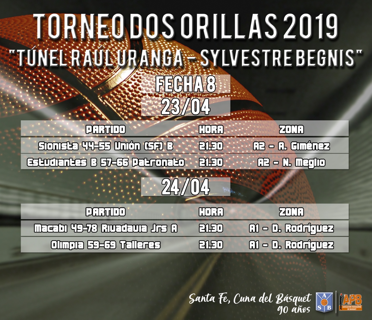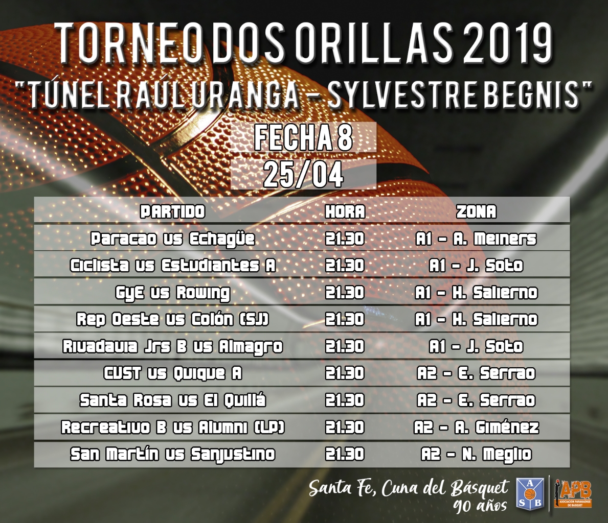 Este miércoles continuó la fecha 8 del Torneo Dos Orillas. En Santa Fe y Paraná, se disputaron dos juegos por la Zona A1 - D. Rodríguez.