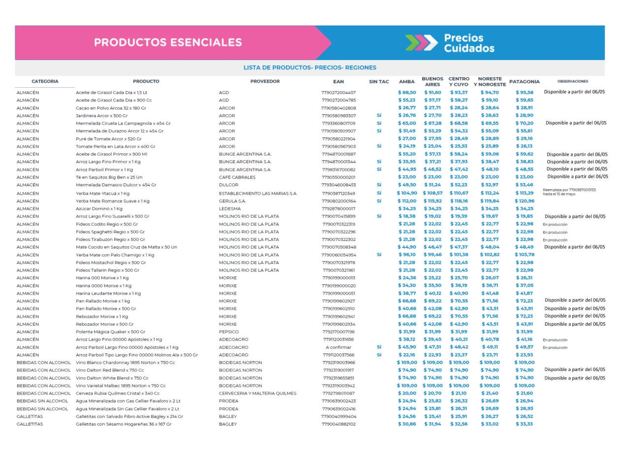 A pocos días del lanzamiento del programa Precios Esenciales y en el marco de los Precios Cuidados, gran parte de estos productos ya se encuentran disponibles en los supermercados locales Kilbel, que fueron los primeros en recibirlos y exhibirlos en sus góndolas. En el caso de los productos que por cuestiones de distribución lo llegan a Santa Fe, se intenta reemplazarlos por productos locales con el mismo precio e, incluso, más bajos y con la misma calidad.