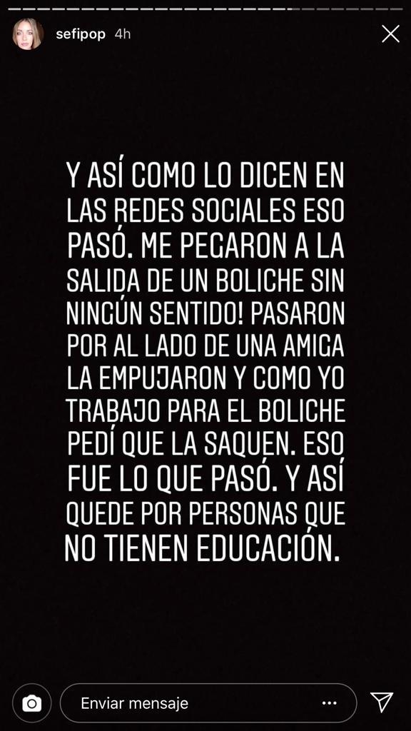 Como ocurre constantemente en estos tiempos, todo se trasladó a la virtualidad. En las historias de Instagram de Estefanía , se pueden ver momentos previos al conflicto. Primero que son retiradas de boliche, luego las amenazas y, posteriormente, la denuncia virtual realizada por la víctima mediante videos y fotos.
