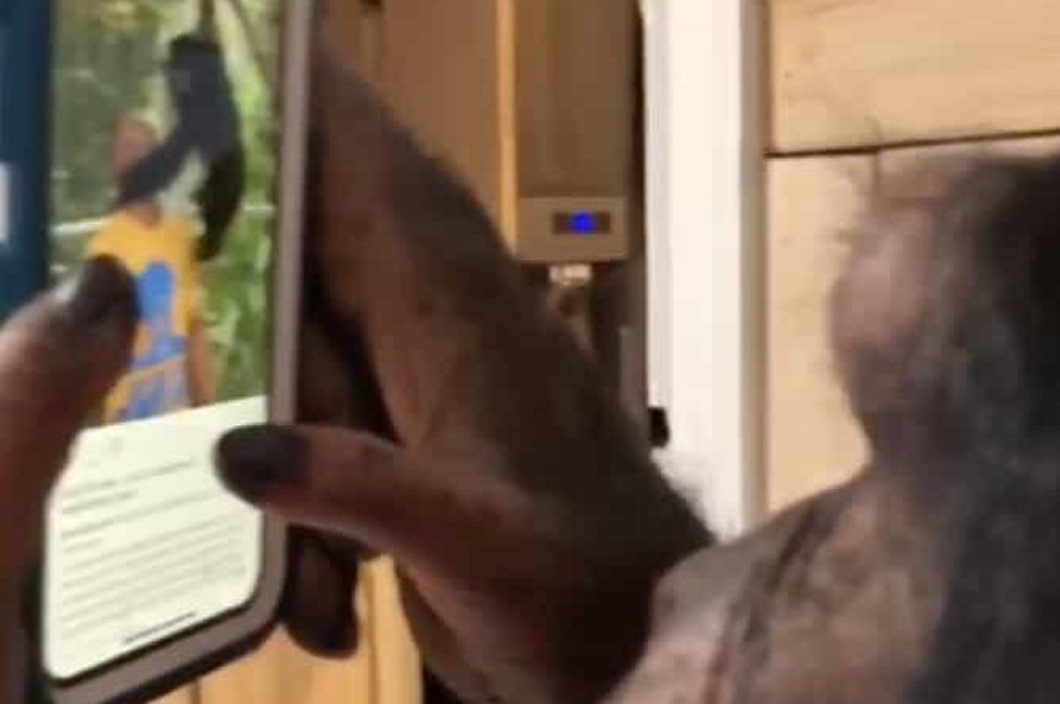 Justamente, en el video el mono mira el perfil de este usuario en la red social, lleno de animales, algo que claramente le generó atracción al inesperado observador.