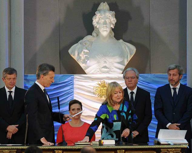El flamante mandatario tomó juramento además al ministro de Economía, Alfonso Prat-Gay; al secretario General de Presidencia, Fernando De Andreis; al ministro del Interior,Rogelio Frigerio; al jefe de Gabinete, Marcos Peña; al ministro de Cultura porteño,Pablo Avelluto; al ministro de Educación, Esteban Bullrich.