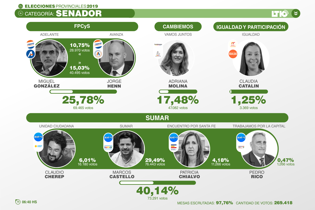 En esa interna, Jorge Henn fue votado por 40.495 personas (58,30%) y Miguel González obtuvo 28.970 votos (41,70%)
