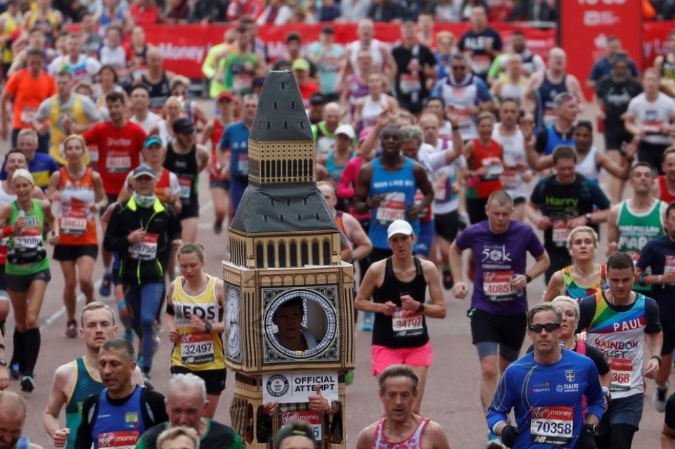 Lejos de las grandes estrellas que ocupan los primeros lugares Lukas Bates decidió correr los 42 kilómetros disfrazado de Big Ben y si bien se convirtió en el centro de atención tuvo un final inesperado.