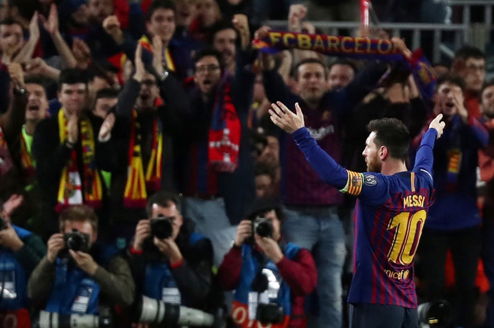 Lionel Messi marcó hoy por duplicado para llegar a los 600 goles en su club y para que Barcelona goleara 3-0 como local a Liverpool, por la ida de su semifinal de Champions League.