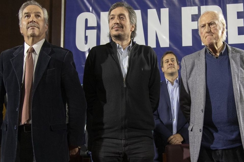 Los precandidatos presidenciales del PJ Agustín Rossiy Felipe Solá, el diputado Máximo Kirchner y otros referentes del peronismo dieron el presente este jueves en un acto convocado por el senador nacional Fernando "Pino" Solanas, quien impulsa un frente "patriótico" de cara a octubre.