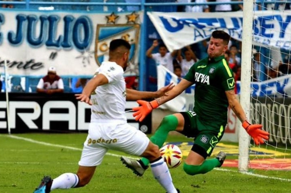 Y en la respuesta desde afuera del área probó Nahuel Tenaglia y la pelota se elevó por encima del travesaño.