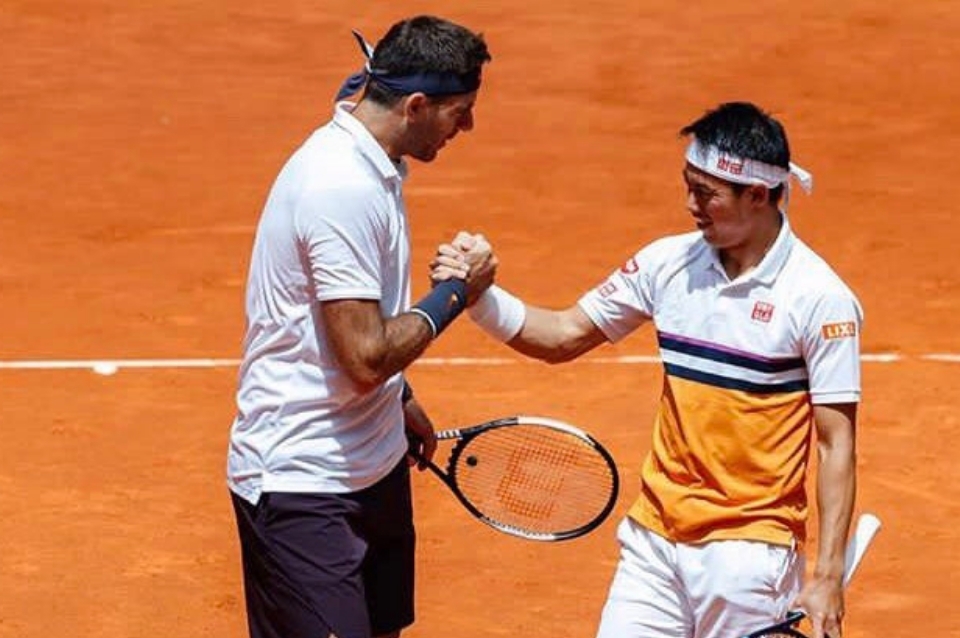 Siete meses después de la lesión de rodilla que lo obligó a alejarse del circuito profesional, Del Potro y Nishikori vencieron al italiano Fabio Fonigni y al sueco Robert Lindstedt con parciales de 5-7, 6-4 y 10-4.