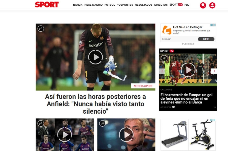 "El Barça escribe la página más negra al caer eliminado de la Champions de manera imperdonable en Anfield", afirma Sport, que apunta a la responsabilidad del entrenador, Ernesto Valverde.