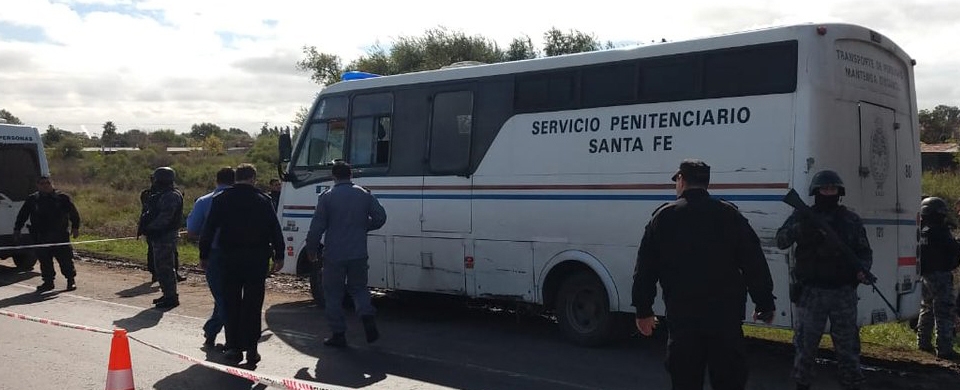 Un colectivo del Servicio Penitenciario que trasladaba presos de Rosario a Coronda fue emboscado este miércoles al mediodía por dos autos en la autopista a Santa Fe y al menos 14 presos se fugaron. Dos agentes sufrieron heridas. Ocurrió en el km 7 de la autopista, a la altura de Granadero Baigorria.