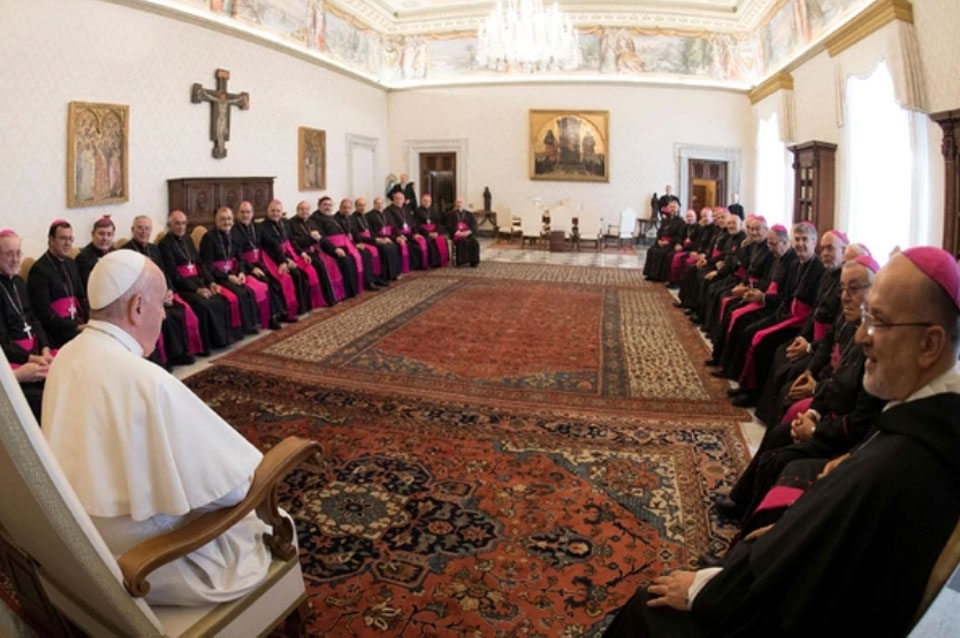 El papa Francisco, en una reunión con obispos el pasado 2 de mayo (REUTERS)