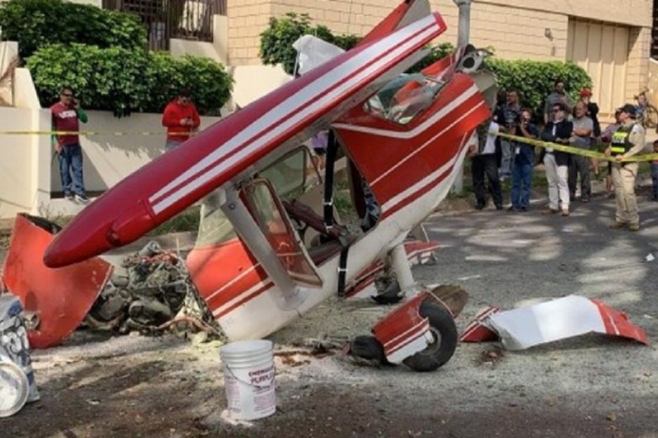 La avioneta de color rojo y blanco perdió vuelo, primero impactó con la cola de un árbol y después terminó aterrizando en plena calle cerca del parque La Amistad en Pavas.