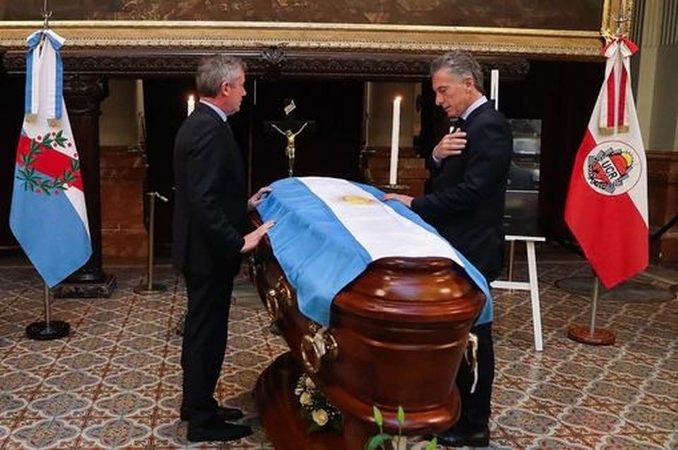 Alrededor de las 15, Macri llegó al velatorio en medio de un gran despliegue policial por la amenaza de bomba que recibieron en Casa Rosado y en el Anexo de la Cámara de Diputados. Se fue a los pocos minutos escoltado por su seguridad.