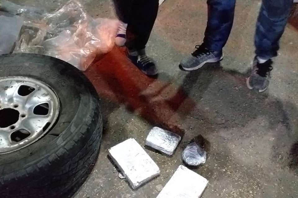 Al revisar la parte de la caja de la camioneta, los policías encontraron una rueda auxiliar suelta desinflada, y al moverla, notaron que había objetos sueltos en su interior. En ese momento, de manera espontánea, el conductor dijo que llevaba estupefacientes dentro de la rueda.