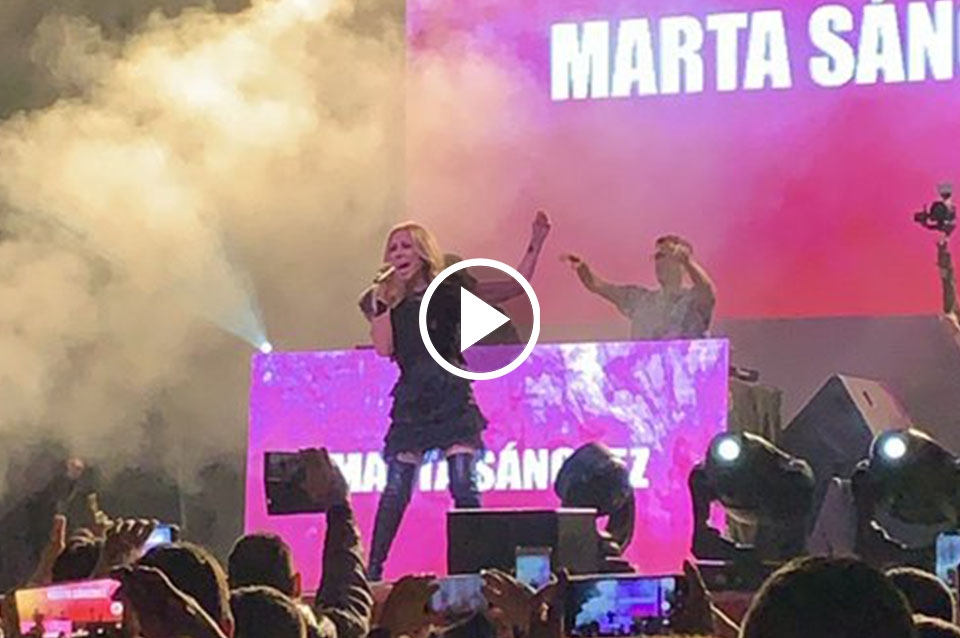 Marta Sánchez, que el pasado mes de febrero estrenó una versión con letra del himno de España, formaba parte del grupo de artistas que anoche debía actuar en la plaza del Centenari de Badalona en un concierto contra la LGTIfobia, espectáculo en el que solo pudo acabar su primera canción.
