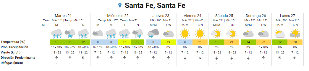 La inestabilidad vuelve a hacerse presente durante este martes en Santa Fe, y estas condiciones meteorológicas se mantendrían durante los próximos tres días, comenzando a mejorar lentamente entre la noche del jueves y las primeras horas del viernes.