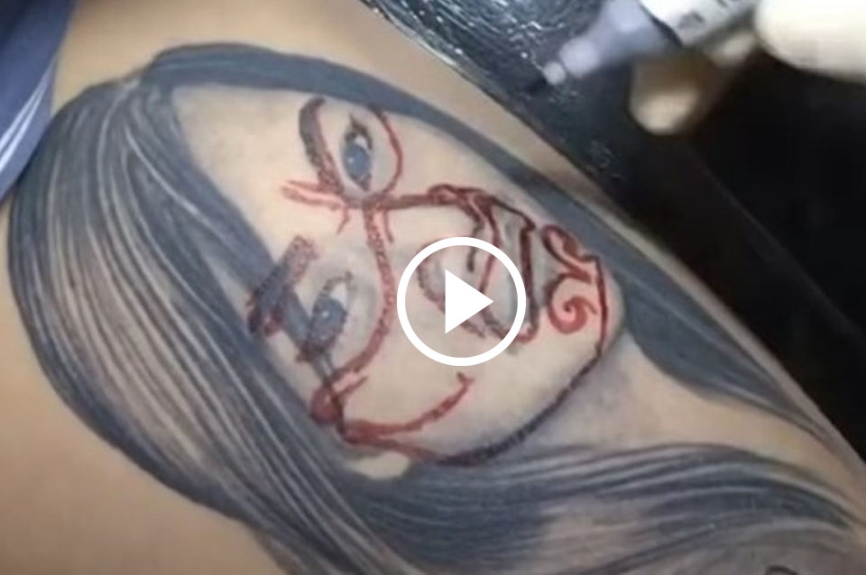 En un video que fue compartido en Facebook se ve el momento en que un tatuador empieza a cubrir de a poco el dibujo.