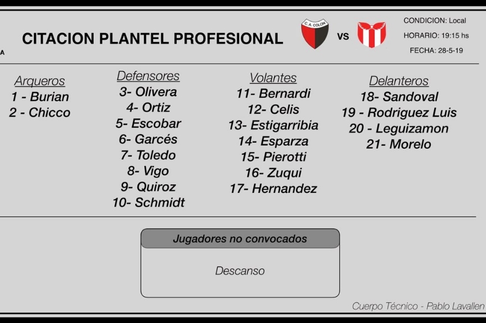 El cuerpo técnico comandado por Pablo Lavallén hizo oficial la nómina de 21 jugadores que esperarán concentrados en el Club de Campo el partido de este martes ante River Plate.