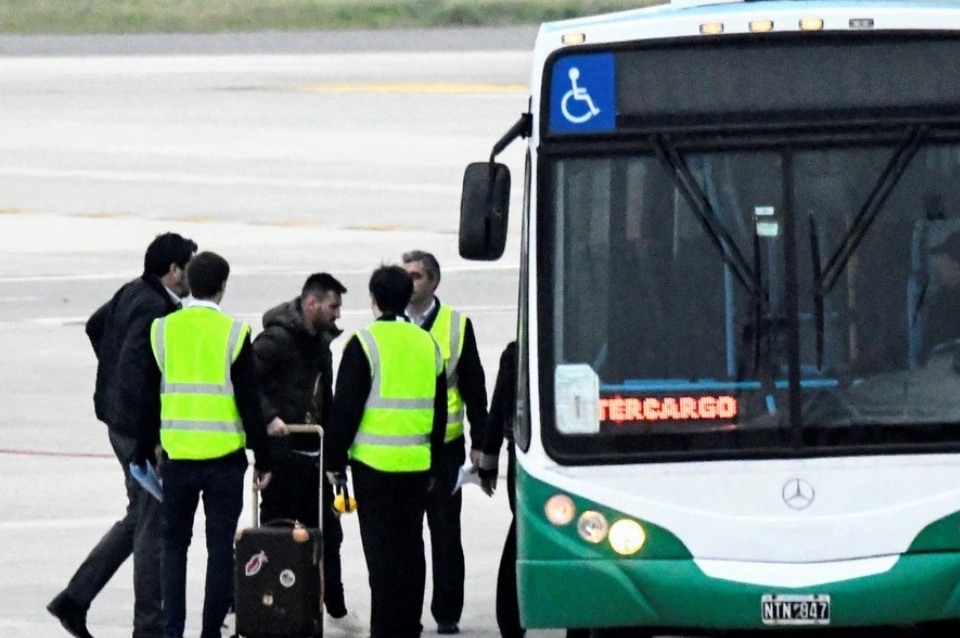 Messi llegó en un avión privado que aterrizó en el Aeropuerto Internacional de Rosario "Islas Malvinas" poco antes de las 8.30 y está previsto que en las próximas horas se sume a la concentración "Albiceleste" en Ezeiza.