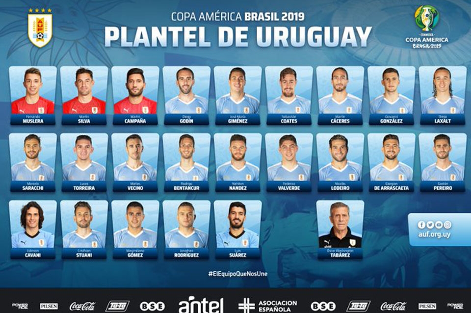 🇺🇾 Confirmado el plantel de 23 futbolistas de @Uruguay para la #CopaAmérica Brasil 2019.#ElEquipoQueNosUne pic.twitter.com/tl9MYy6JIX