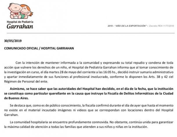 Este jueves desde el Hospital Garrahan difundieron un comunicado en el que anuncian que la institución se presentará como "particular querellante en la causa que instruye la fiscal de Delitos Informáticos de la Ciudad, Daniela Dupuy".