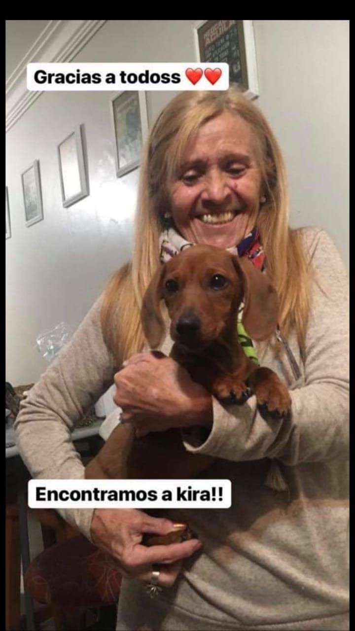 Los vecinos comenzaron una campaña para dar con la mascota y finalmente, tras la enorme repercusión del caso, Kira fue hallada por sus dueños que hicieron público el momento del feliz encuentro.