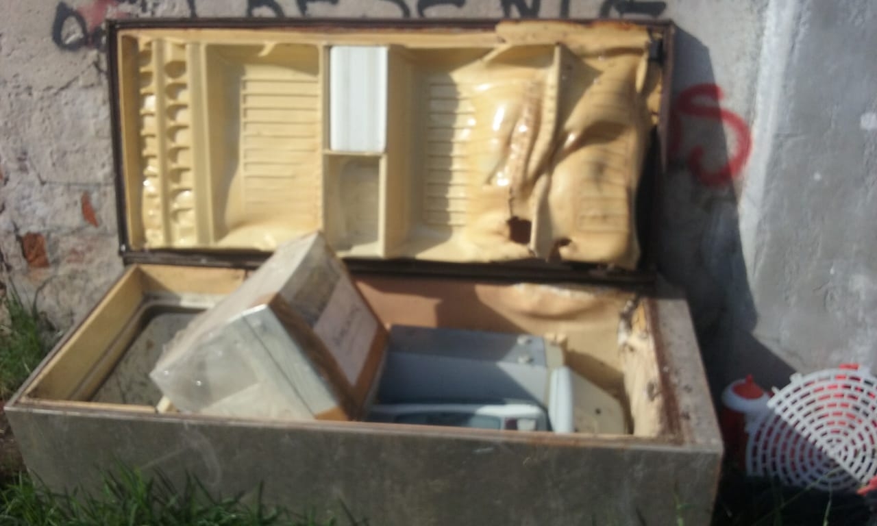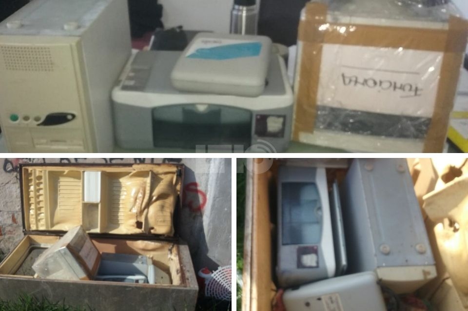 Otro allanamiento se produjo en un terreno baldío ubicado en calle 3 de Febrero al 4500, donde se halló dentro de una heladera abandonada elementos informáticos, mercadería y un anafe robados de dicha vecinal.