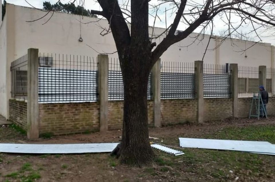 Spitale describió que para evitar que los disparos impacten contra la escuela decidieron colocar chapas contra las rejas que rodean el perímetro del establecimiento.