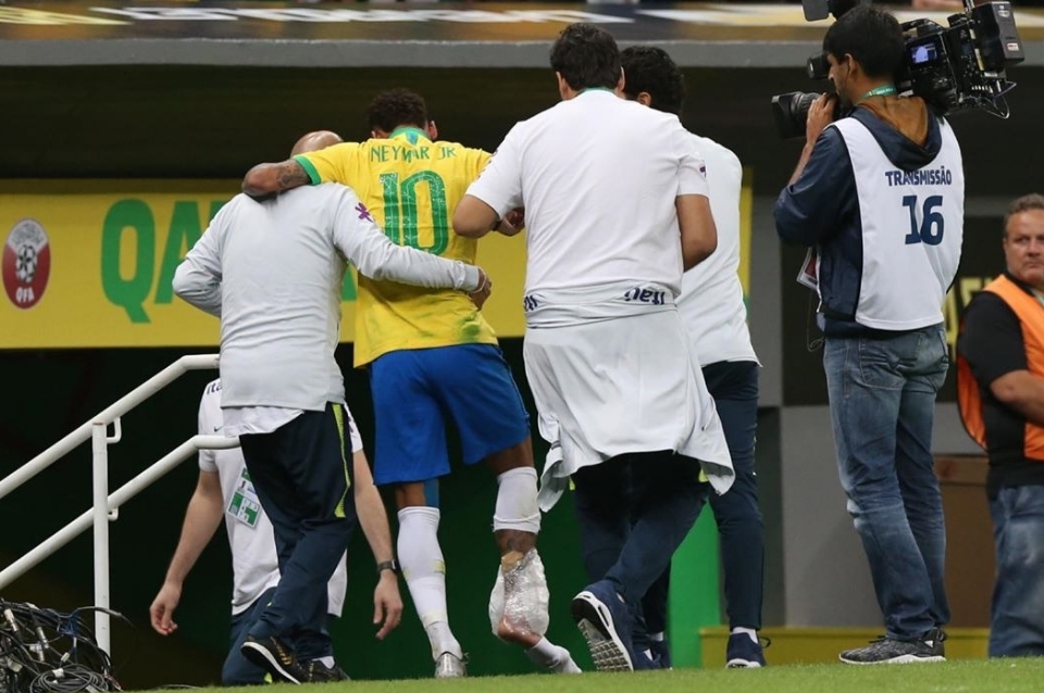 Neymar se retiró del campo de juego rumbo a los vestuarios con un vendaje sobre la zona afectada, asistido por los médicos del plantel brasileño y sin poder apoyar el pie derecho.