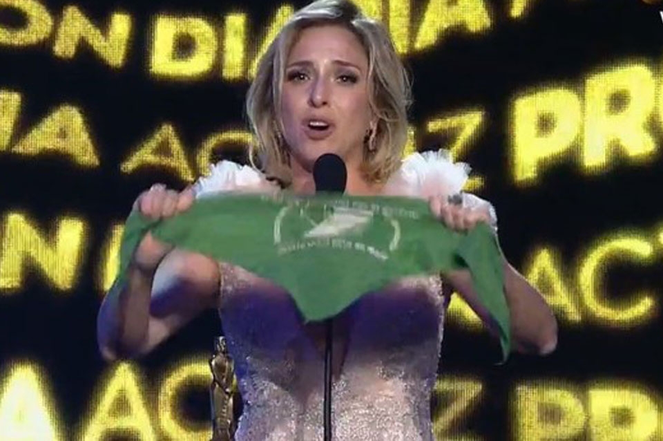 El debate sobre el aborto también estuvo presente, cuando la actriz Carla Peterson subió al escenario con un pañuelo verde y señaló: "Pónganse de acuerdo para que las mujeres no sigan muriendo".