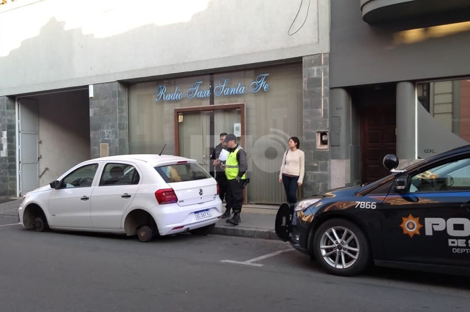 Una insólita situación se dio esta madrugada en el centro de la ciudad donde robaron dos ruedas a un auto que se encontraba estacionado en la calle. Tal como lo muestra la foto los delincuentes se llevaron la rueda trasera y delantera del lado izaquierdo del rodado. El hecho ocurrió en 1º de Mayo al 2600 donde la dueña de un automóvil Volskwagen Gol de color blanco se encontró con la mala noticia cuando salía de su vivienda para ir al trabajo.