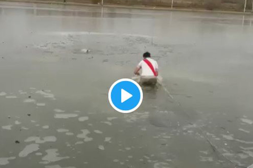 Un video que muestra como un joven se lanza desesperado a un lago congelado en Río Gallegos para rescatar a un perro que estaba atrapado se viralizó en las redes.