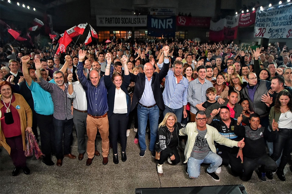 Los candidatos a gobernador e intendente por el Frente Progresista Cívico y Social, Antonio Bonfatti y Emilio Jatón, protagonizaron este miércoles el cierre de campaña para las elecciones del próximo domingo. Los acompañaron la candidata a vicegobernadora, Victoria Tejeda; el candidato a senador, Jorge Henn; la integrante de la lista de diputados Erica Hynes (en representación de Miguel Lifschitz, quien encabeza la nómina) y Paco Garibaldi como cabeza de lista de concejales.