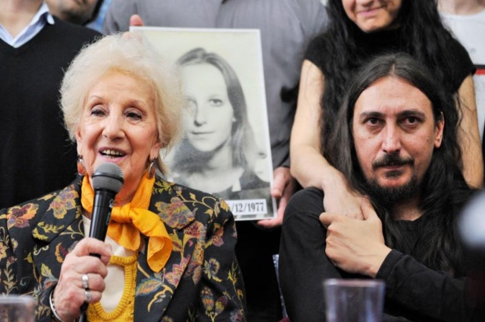 Javier Matías Darroux Mijalchuk junto a Estela de Carlotto, titular de Abuelas de Plaza de Mayo.
