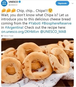 Una cuenta oficial de la Unesco publicó este martes una receta del chipá preparada en la Reserva Yabotí, Misiones, Argentina. Esto molestó a algunos internautas paraguayos dado que la publicación no mencionaba a su país, que adoptó por ley al chipá como alimento nacional y celebran su día una vez al año.