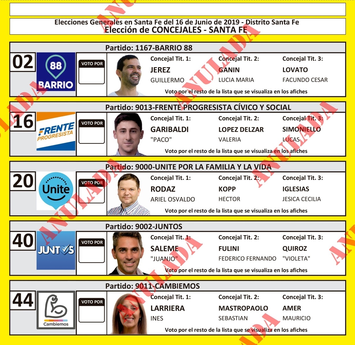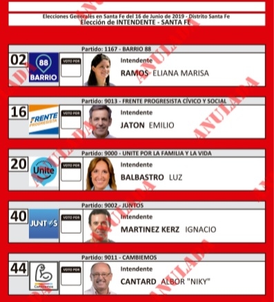 En nuestra ciudad, las cinco boletas son las siguientes: