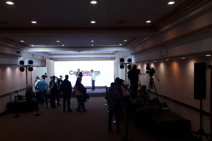 En el bunker de Cambiemos siguen la elección con normalidad por estos momentos. Cerca de las 18, tal como sucedió en las primarias del 28 de abril pasado, el bunker recibió una amenaza de bomba. Como aquella vez, fue a través de una nota escrita de puño y letra, pero con la particularidad de que la misma apareció en la urna de una escuela.