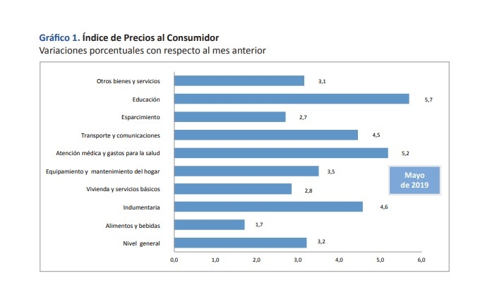 El rubro que más se disparó fue Educación, con 5,7% de incremento; seguido por Atención médica y gastos para la salud, con 5,2%; y por Indumentaria, con 4,6%.