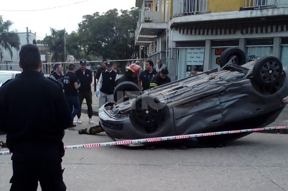 Una mujer quedó atrapada en su vehículo tras chocar y posteriormente volcar en la intersección de Alvear y LLerena. Su estado.