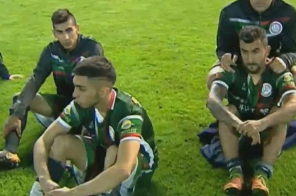 Los jugadores de San Jorge, sentados en el campo de juego (Foto: redes sociales)