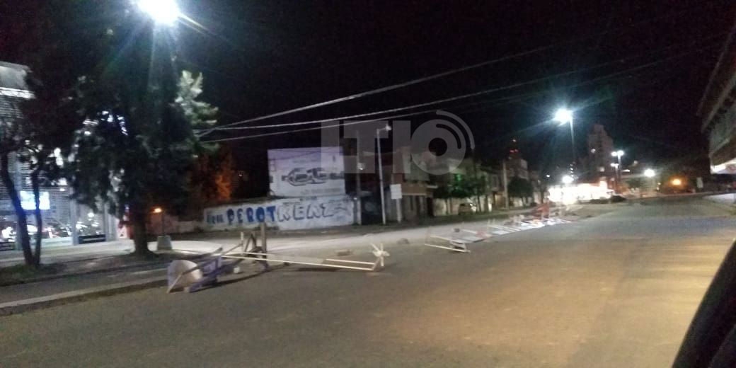 La señalética de obra en Avenida López y Planes caída por el viento (Foto: LT10)