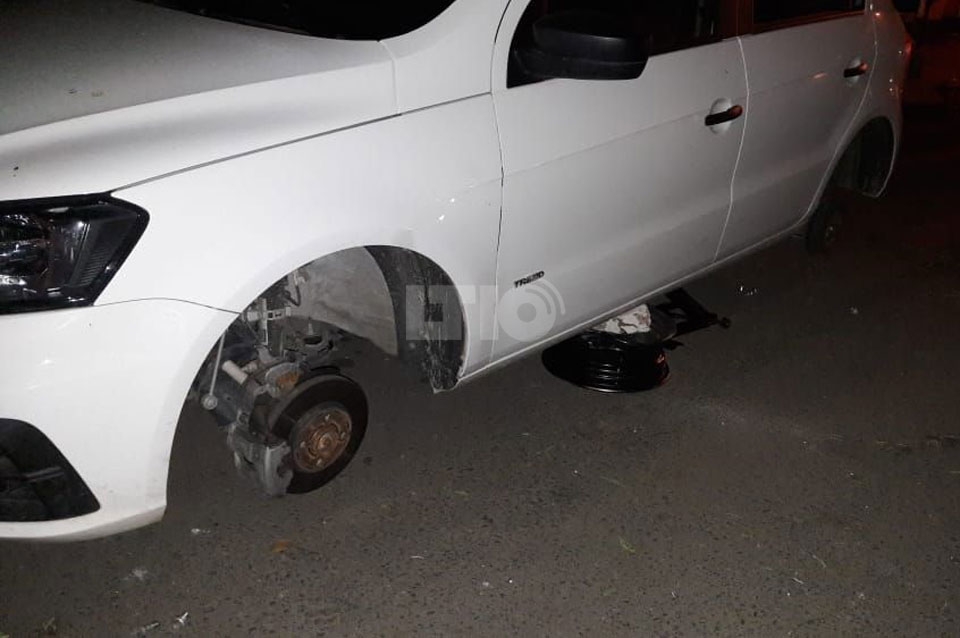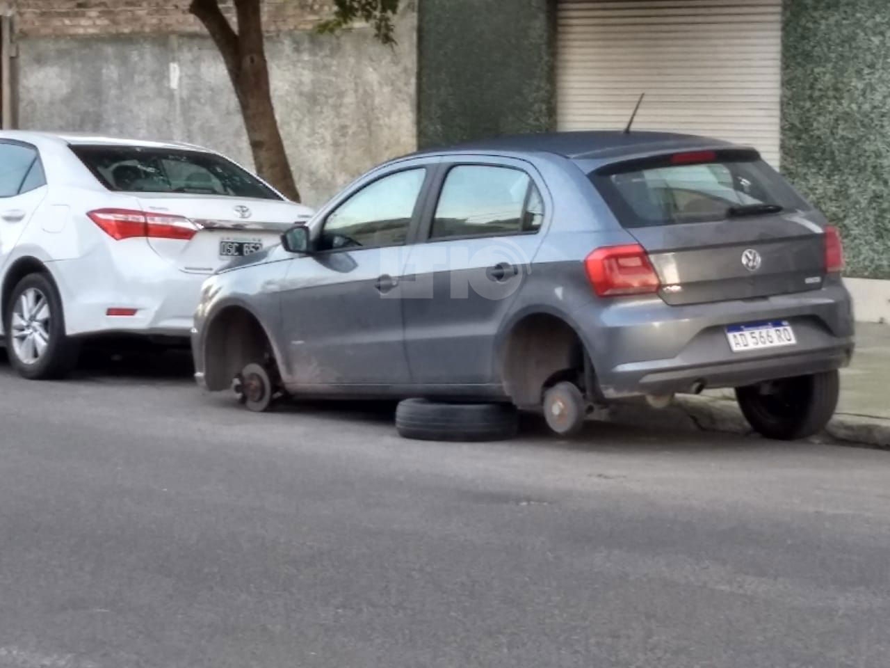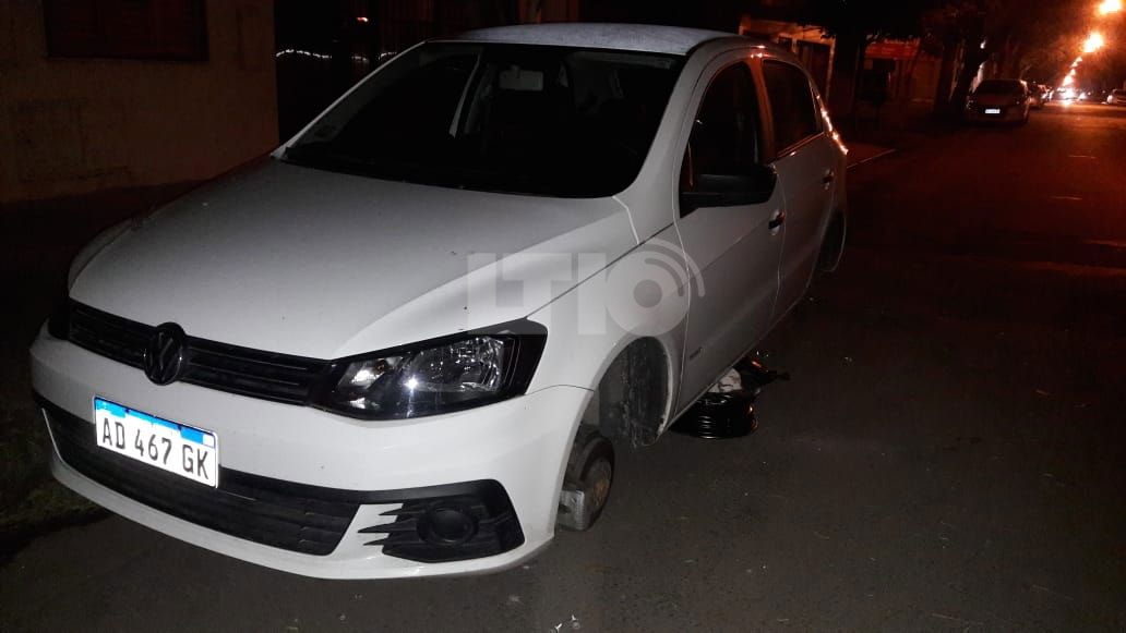 El móvil de LT10 pudo advertir que un vehículo WV Gol color blanco estacionado sobre calle Saavedra al 2000 fue blanco de los ladrones en horas de la madrugada de este miércoles. Desconocidos le sustrajeron las dos ruedas del lado del conductor.