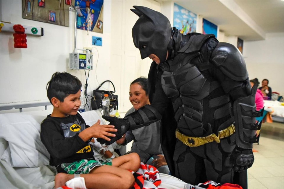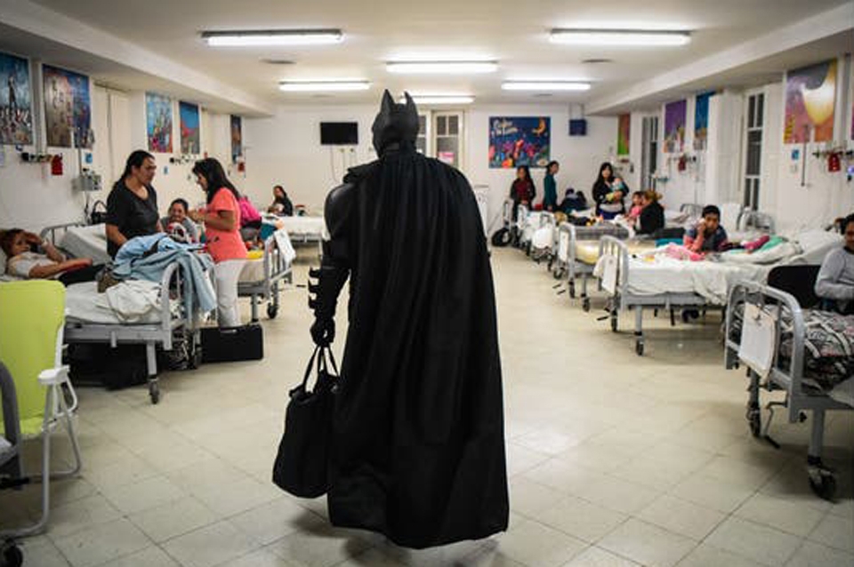 Se trata de un hombre conocido como Batman Solidario que desde hace años visita a los chicos en el centro médico para entretenerlos, pero además organiza distintos eventos para colaborar con el hospital en distintos niveles, como la donación de alimentos.
